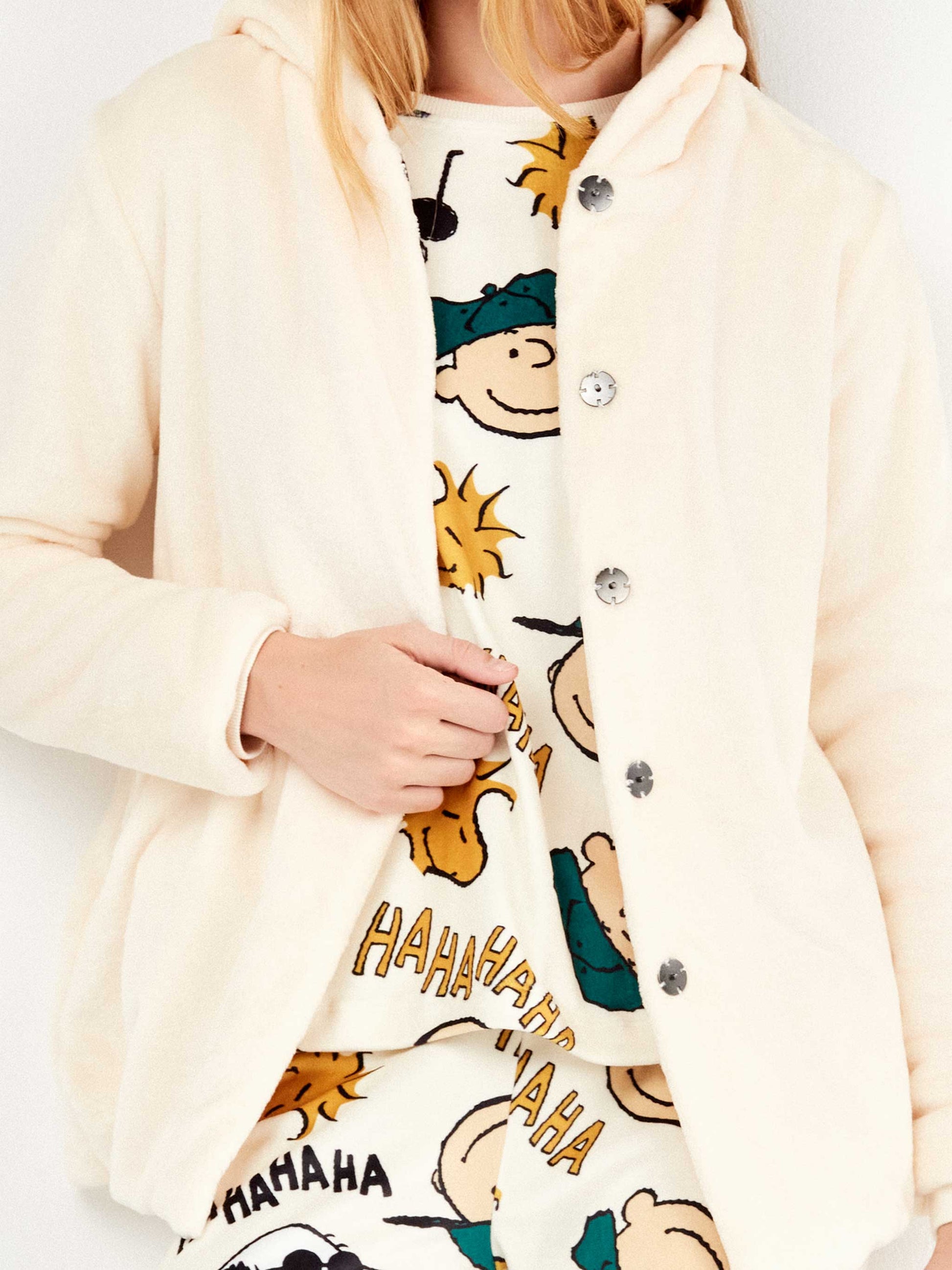 Κοντό σακάκι fleece, με κουκούλα. Έχει βαμβακερή επένδυση και κουμπώνει με κρυφά κουμπιά.