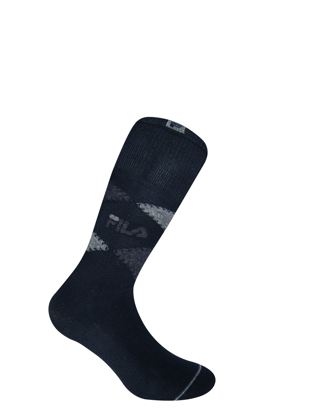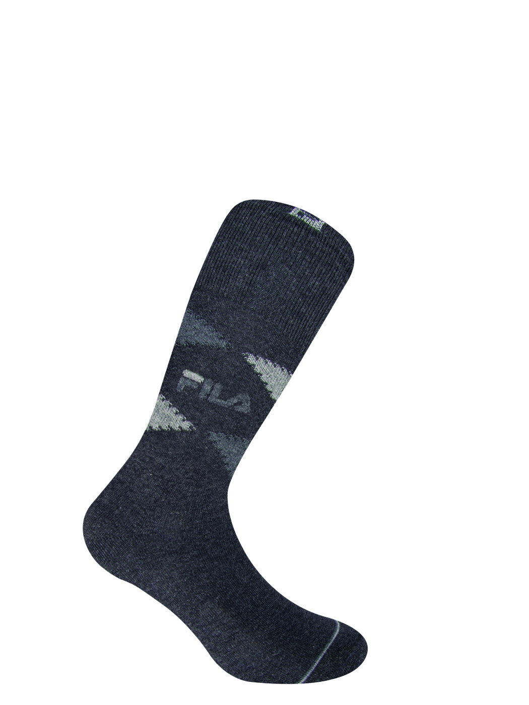 Χειμερινές ανδρικές κάλτσες Fila, της κλασικής σειράς. Έχουν γεμάτη πλέξη, μαλακό λάστιχο στη γάμπα και λεπτές ραφές στη μύτη των ποδιών. Σε τρια διαχρονικά χρώματα και σχέδιο με ρόμβους.