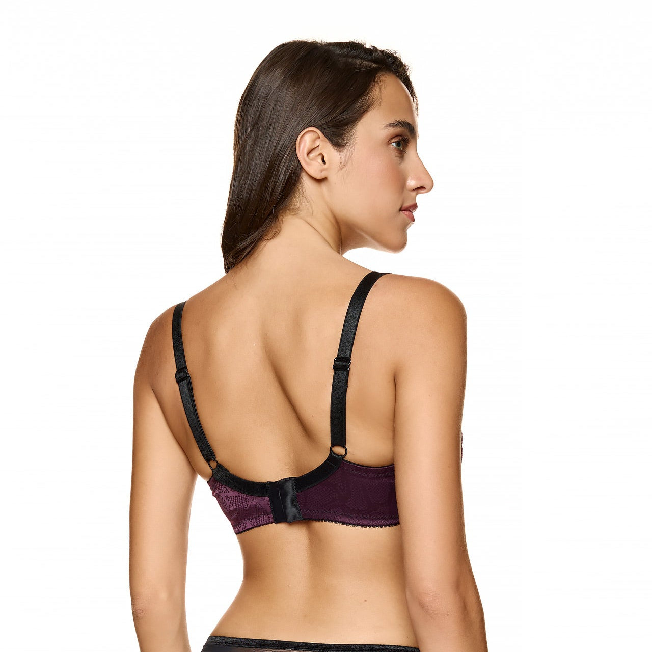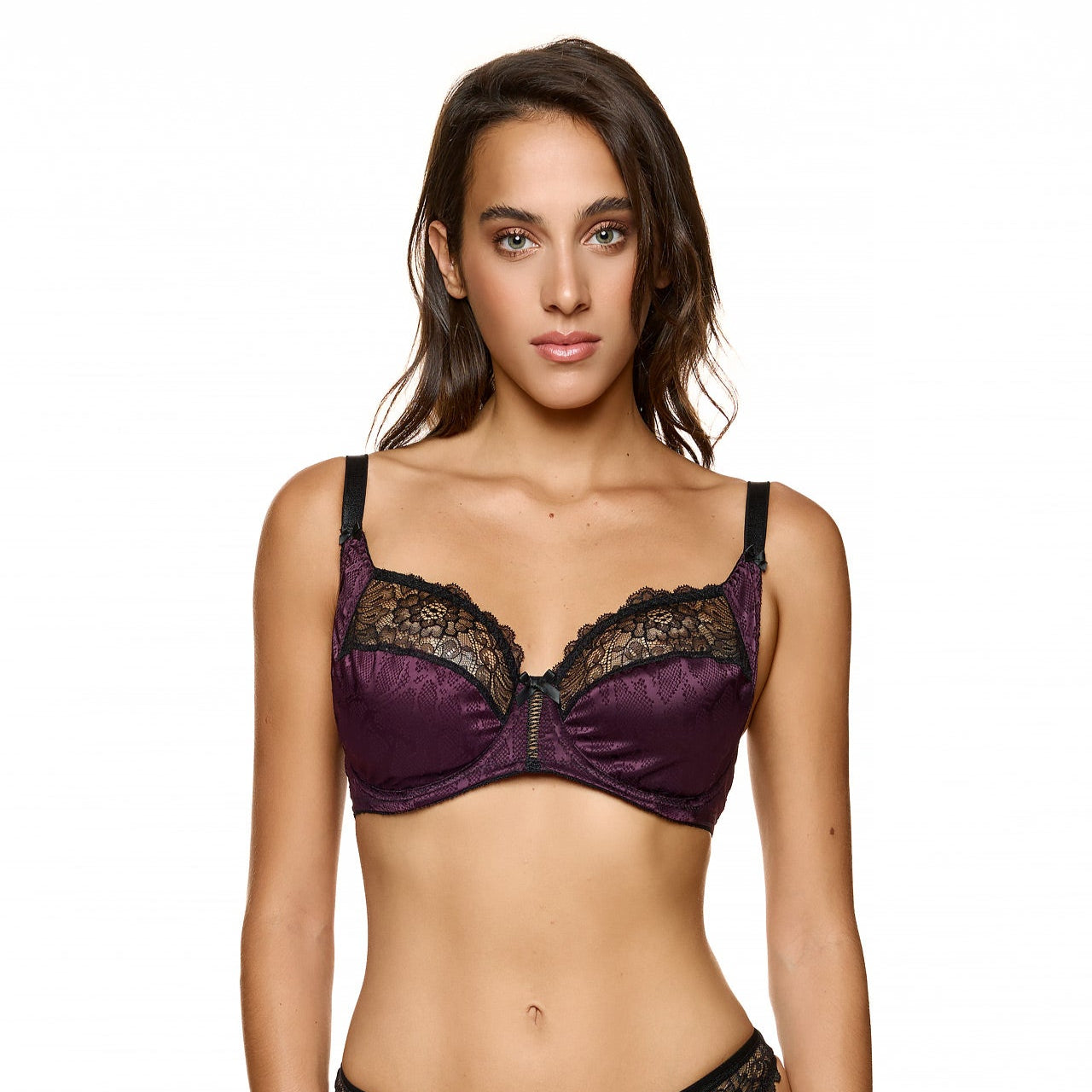 Σουτιέν με μπανέλα, χωρίς ενίσχυση για μεγάλο στήθος, με πλήρη κάλυψη. Οι cups του είναι κατασκευασμένες από διπλό ύφασμα για μεγαλύτερη σταθερότητα και ραφές που μαζεύουν το στήθος από το πλάι, ενώ το τελείωμά του αποτελείται από δαντέλα. Διαθέτει 4 θέσεις κουμπώματος στην πλάτη και ρυθμιζόμενες τιράντες.