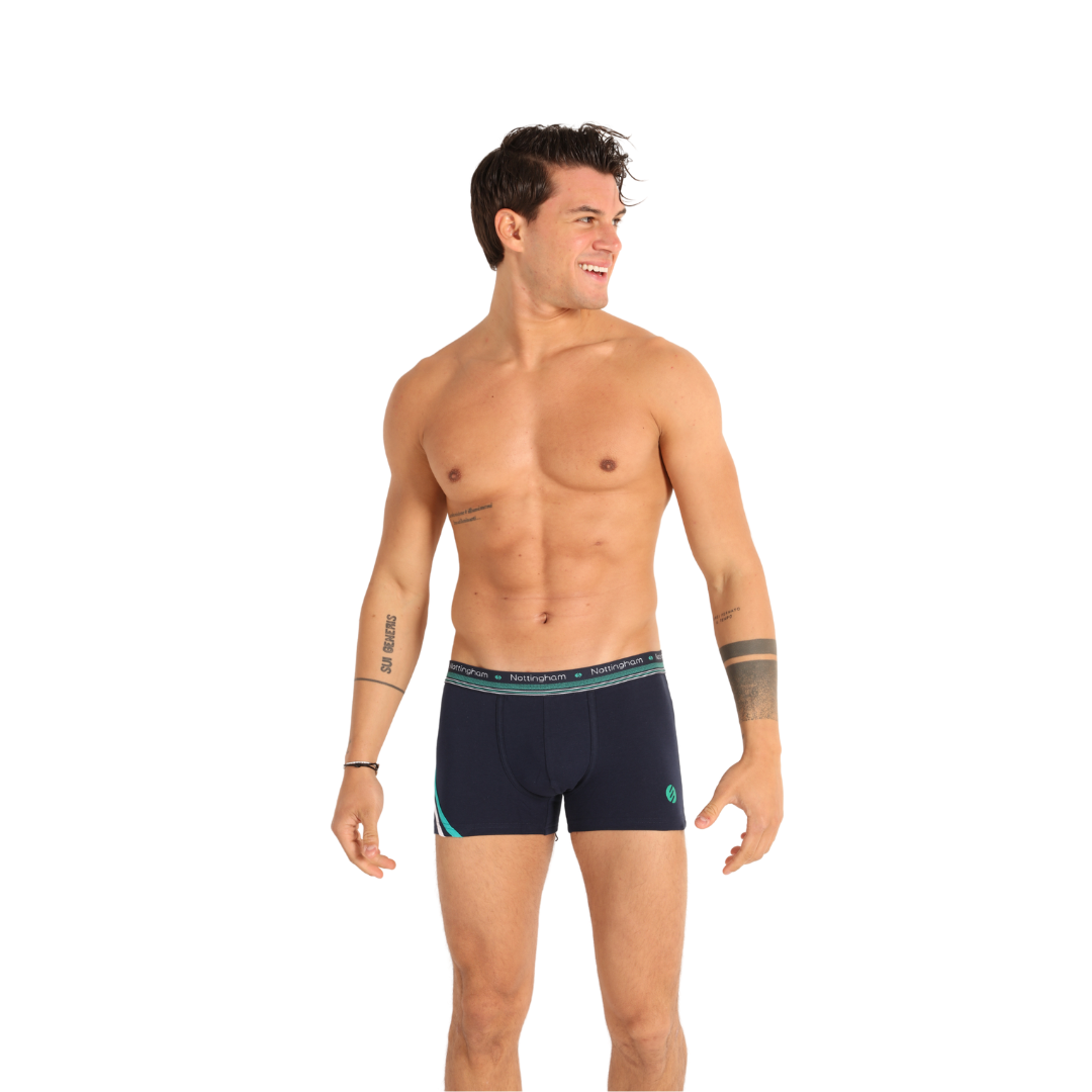 Βαμβακερό κολλητό ανδρικό boxer, με εξωτερικό μαλακό λάστιχο. Διαθέσιμο σε τρεις χρωματικούς συνδυασμούς. Σχετικά στενή εφαρμογή. Έρχεται σε όμορφη συσκευασία.