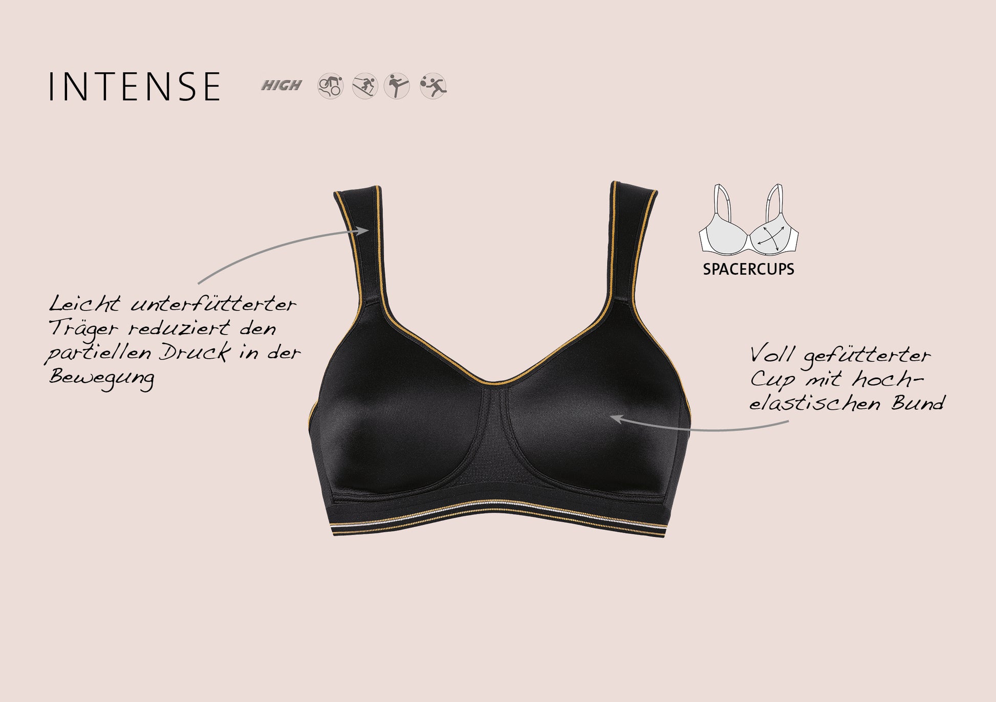 Αθλητικό σουτιέν για μεγάλο στήθος, χωρίς μπανέλα και με ελαφριά επένδυση απο αφρώδες υλικό που αφήνει το σώμα να αναπνέει. Μαλακό και άνετο, κατασκευασμένο από υλικά που δεν ερεθίζουν το δέρμα, χωρίς ραφές που το καθιστούν αόρατο κάτω από τα ρούχα. Οι τιράντες του είναι ενισχυμένες στην περιοχή του ώμου έτσι ώστε να μην πληγώνει το δέρμα και να προσφέρει μεγαλύτερη άνεση. Επίσης διαθέτουν κλιπ που σας επιτρέπουν να το χρησιμοποιήσετε και χιαστί. Καλύπτει όλο το στήθος και στηρίζει άψογα. Θα το λατρέψετε!!