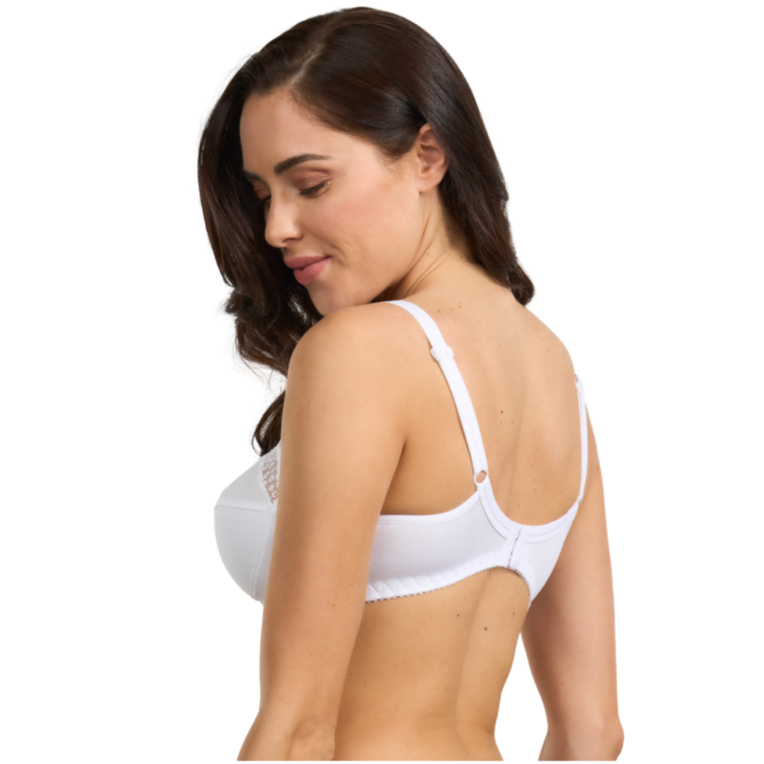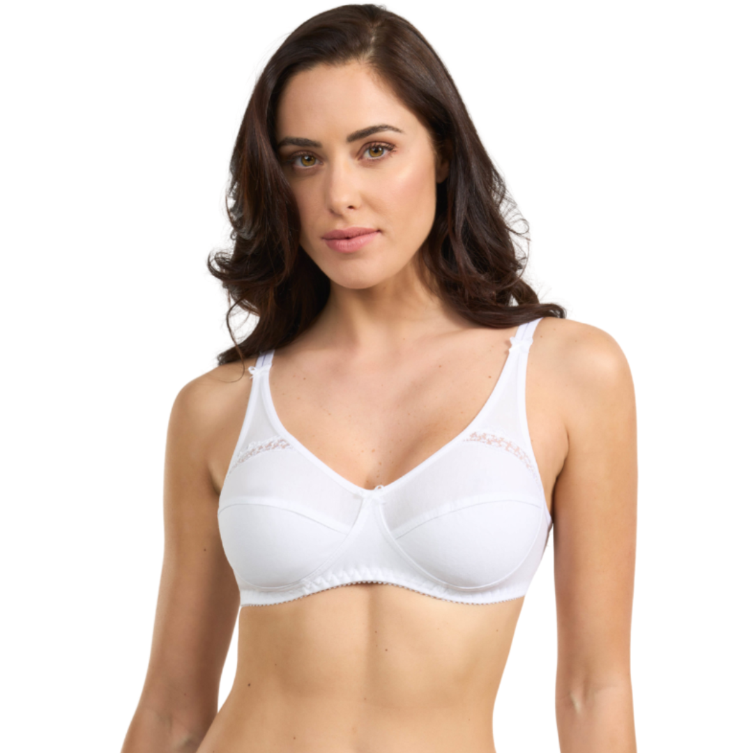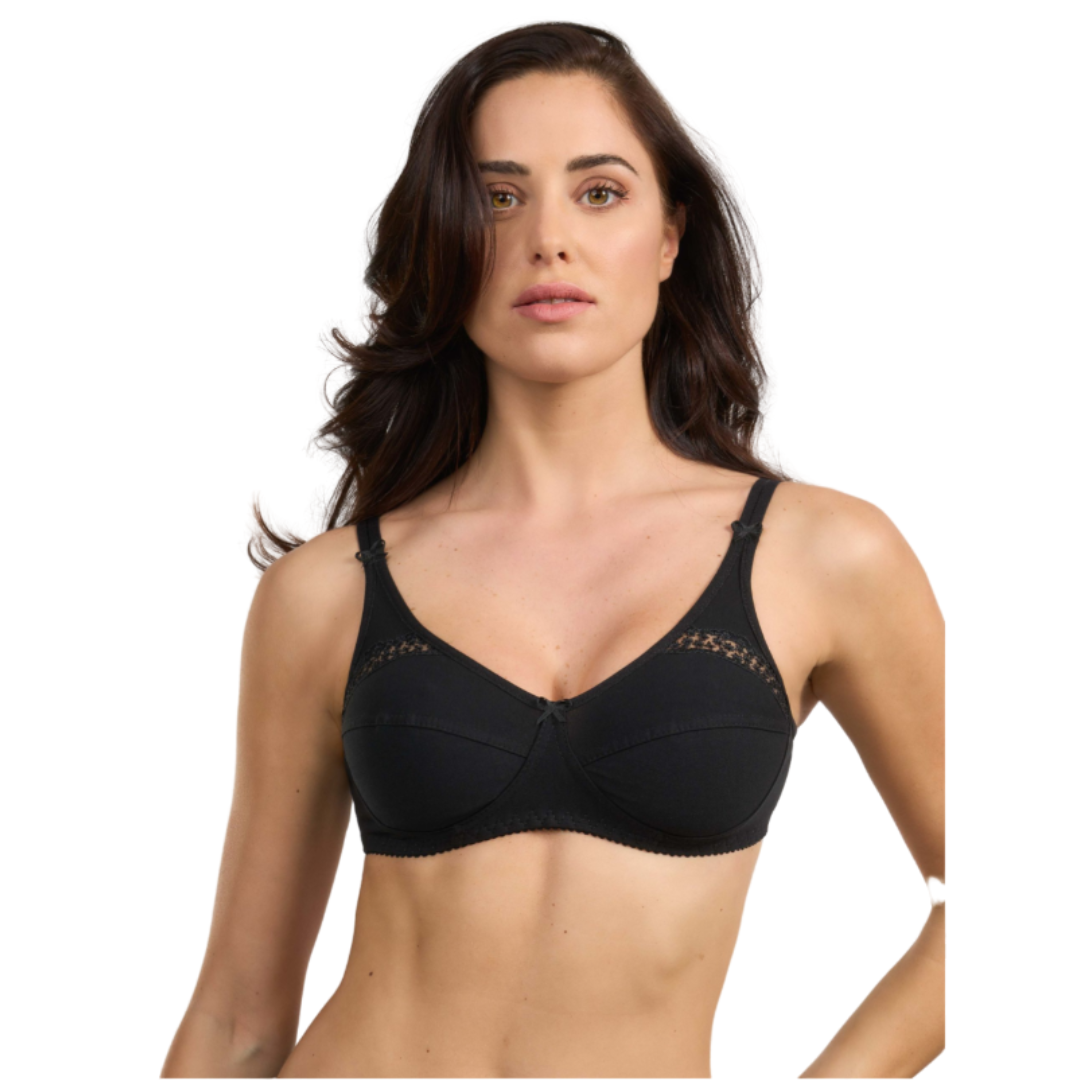 Κλασικό σουτιέν, χωρίς μπανέλα και ενίσχυση, με λεπτομέρειες δαντέλας. Βαμβακερό, με ρυθμιζόμενες τιράντες και 3 θέσεις κουμπώματος στην πλάτη. Καλύπτει στήθος και είναι άνετο στην πλάτη.