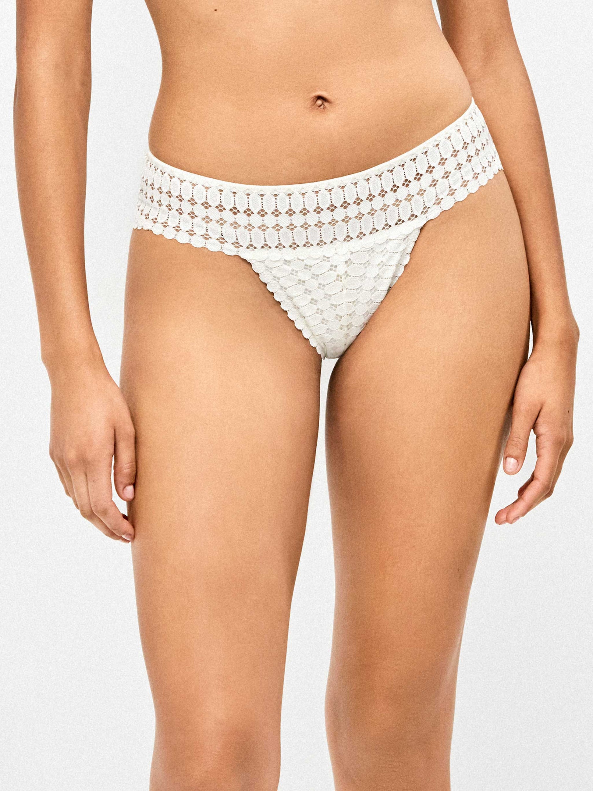 Εσώρουχο με απαλή κηπούρ δαντέλα και βαμβακερό καβάλο. Δεν διαγράφει καθώς δεν έχει ραφές στα τελειώματά του.