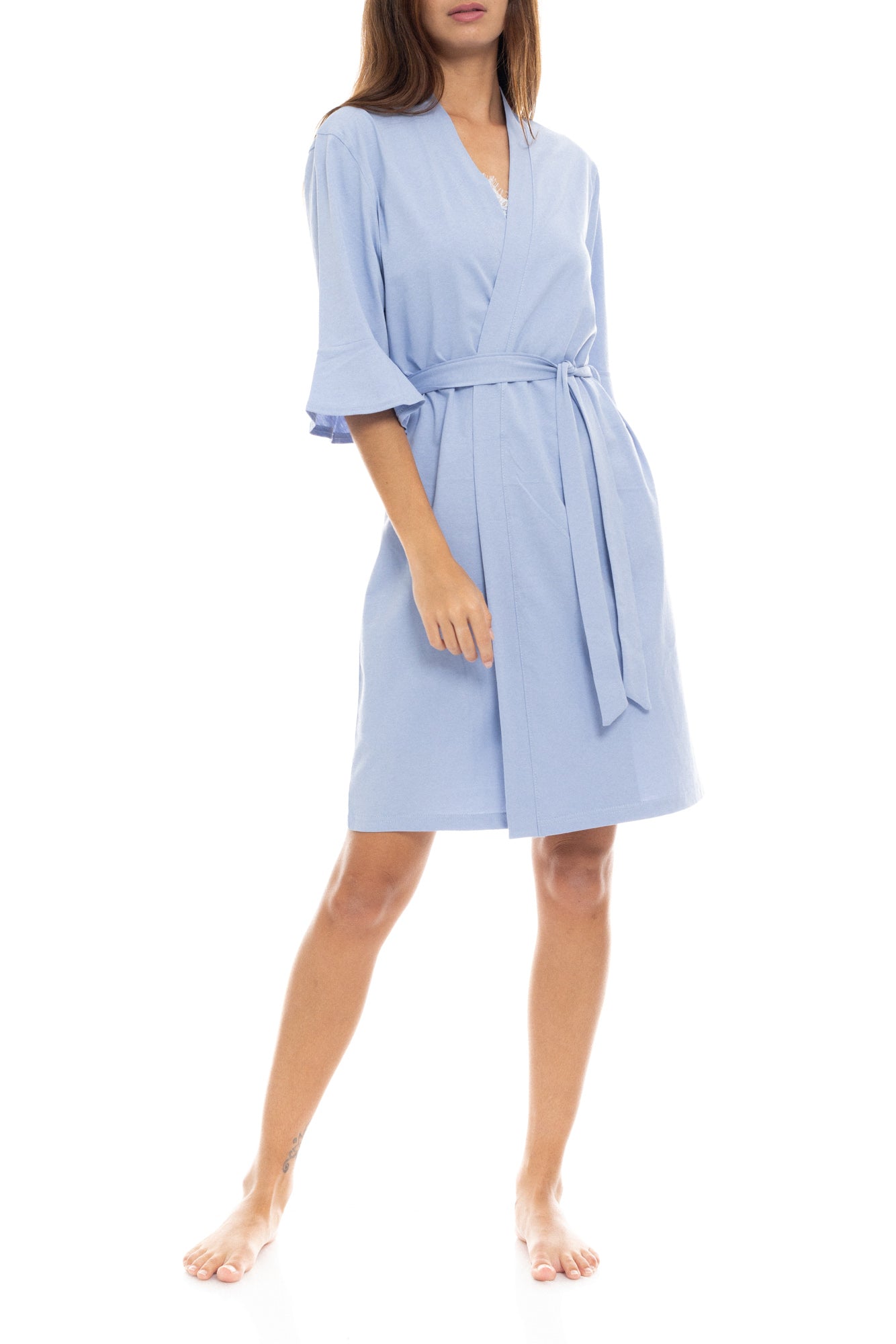Βαμβακερή ρόμπα με 3/4 μανίκι που δένει στη μέση με ζώνη. Συνδυάστε την με όποια νυχτικιά προτιμάτε.
