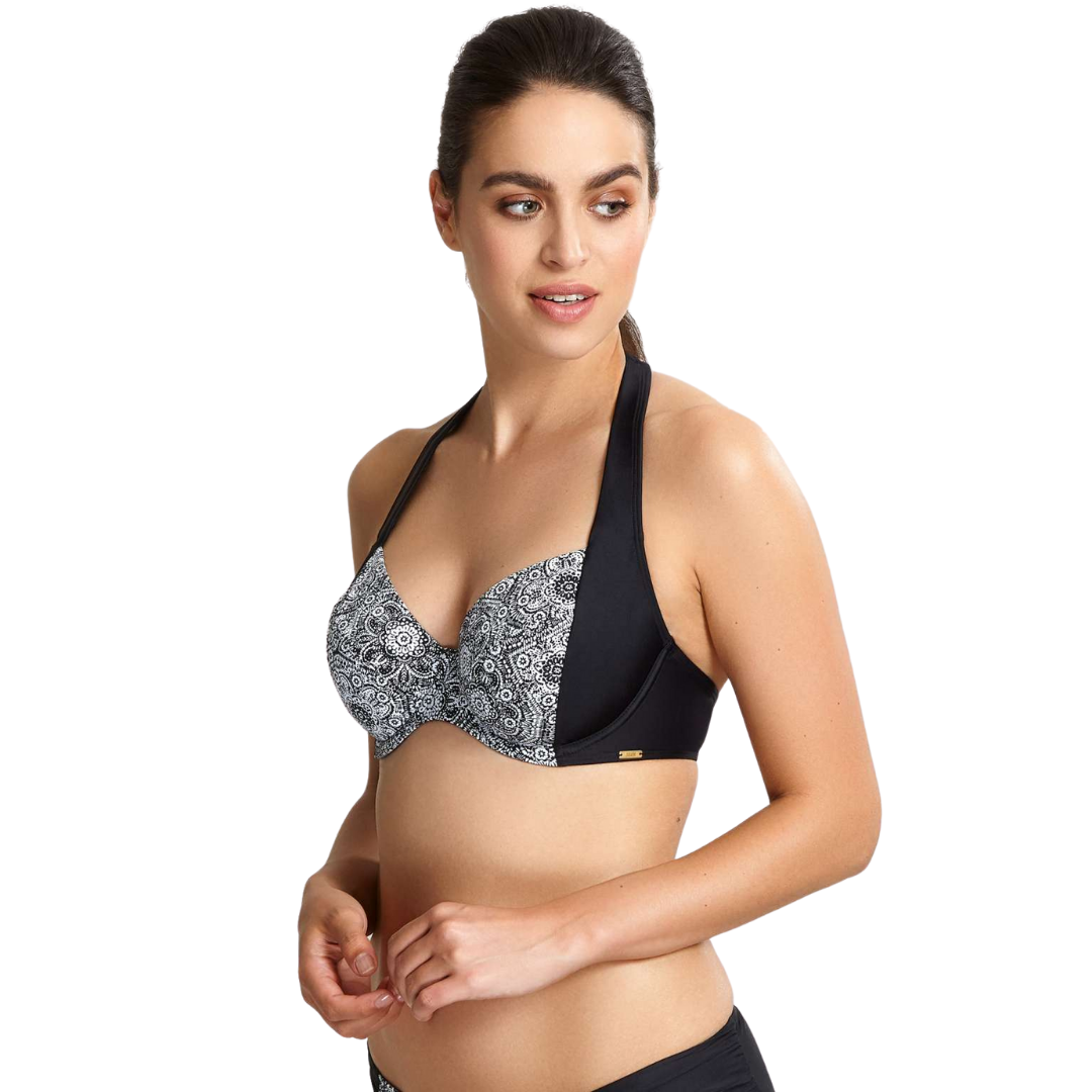Μαγιό για μεγάλο στήθος PANACHE με μπανέλα, χωρίς ενίσχυση που δένει στο λαιμό. Έχει κούμπωμα ασφαλείας και πολύ καλή στήριξη.